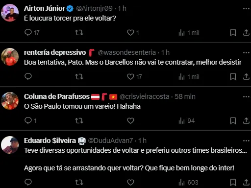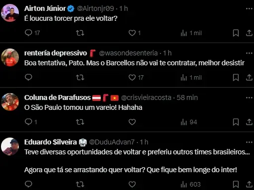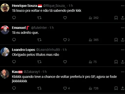 Diante de muitos colorados, o atleta está fazendo isso porque deseja retornar ao Beira-Rio para encerrar a carreira. Quando teve a oportunidade, ele escolheu o eixo Rio-SP.