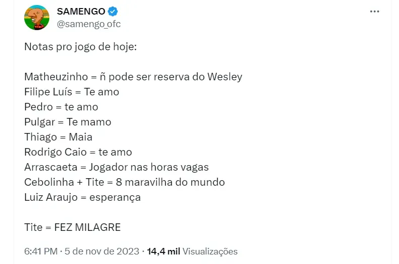 “Pior temporada de Arrascaeta com as cores do Flamengo”, disse um torcedor do Mengão sobre o ídolo do clube.