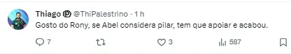 Porém, uma notícia chamou a atenção nas últimas horas. Segundo informações do jornalista André Hernan, Rony está incomodado com as críticas que recebe da torcida do Palmeiras nas redes sociais e que poderia sair do clube caso chegue uma proposta.