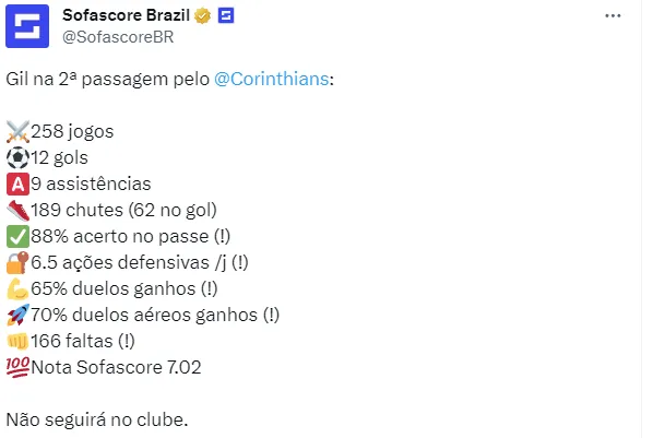 Gil pode pintar em um dos principais clubes do futebol brasileiro. O experiente jogador não teve o contrato renovado junto ao Corinthians e deixa o clube para 2024.