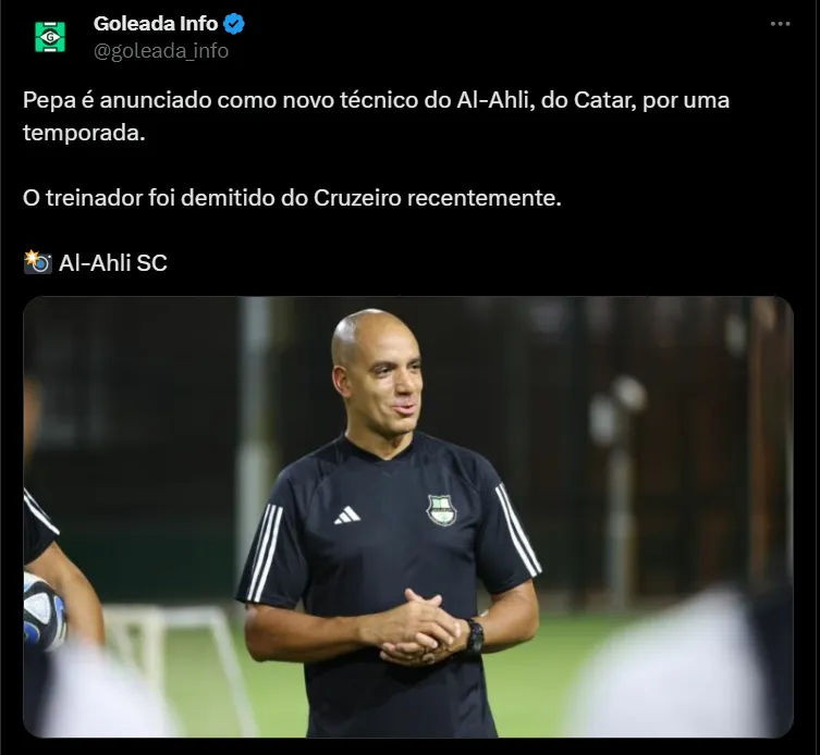 Trata-se do Al-Ahli, do Catar. Nessa terça-feira (3), o técnico foi anunciado pelo time de forma oficial e assinou contrato válido por uma temporada. Esse será o seu primeiro trabalho desde a saída da Raposa.