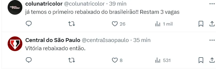 Na web, parte da torcida do São Paulo entende que o Leão pode ter dificuldades em se manter na elite do futebol brasileiro com a chegada de Carpini, que deverá ser oficializada em breve.