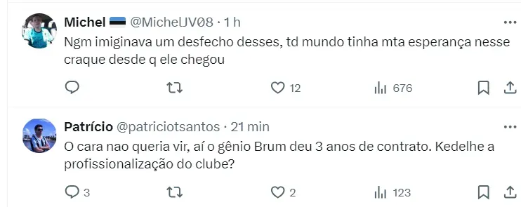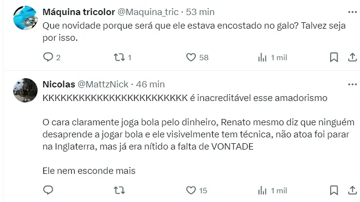 Nas redes sociais, boa parte da torcida gremista é a favor da decisão da diretoria em afastar Nathan do time titular em meio à informação de Saimon.