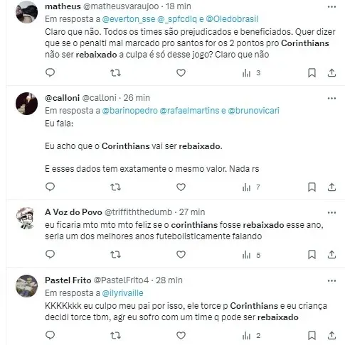 Além das críticas individuais, Neto destacou a queda do Corinthians para a 14ª posição na tabela do Brasileirão, ficando atrás do Santos. A ameaça de rebaixamento, portanto, ainda paira sobre o clube, exigindo atenção na reta final do campeonato.