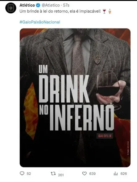 Em outro post, o clube manteve o tom provocativo ao abordar a situação do Maracanã: “O Maracanã virou cinema: pipoca, silêncio do mandante & espetáculo do Galo em campo!” A mensagem ressalta não apenas a qualidade da atuação do Atlético-MG, mas também o impacto da vitória sobre a torcida do Flamengo.