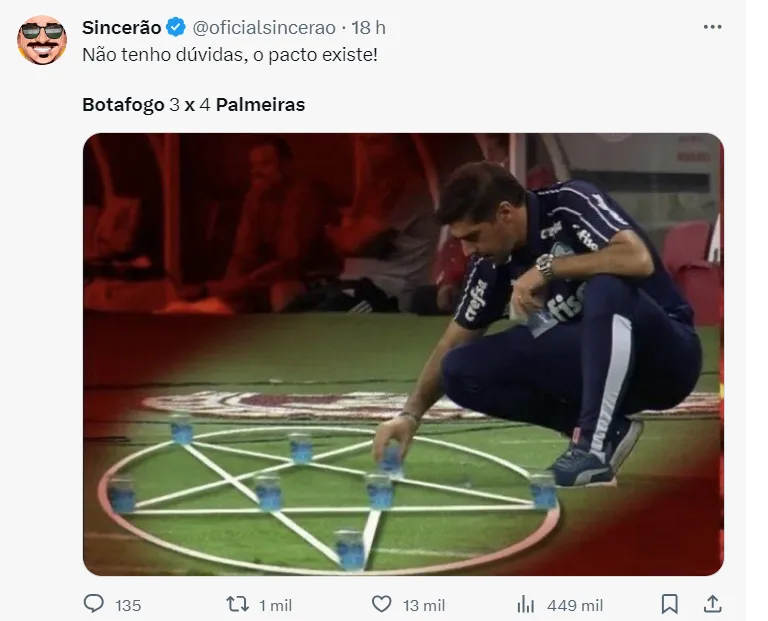 “O Botafogo ganha do Vasco, Bragantino, Fortaleza, Santos, Coritiba e do Cruzeiro. Seis jogos. Pra mim, o Botafogo é campeão brasileiro”, disse Craque Neto.
