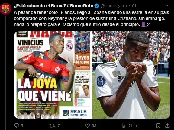 “Estou cada vez mais triste. O que passo a cada jogo, a cada dia, não é fácil. E não sou só eu que passa por isso, são todos os negros na Espanha, e não só na Espanha, no mundo todo”, disse.