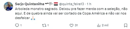 Após o assunto viralizar, o jogador publicou em suas redes sociais sobre o caso, mas ironizando as críticas direcionadas e ele.