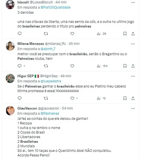 “Entre Bragantino e Palmeiras, é o Palmeiras quem mete medo. O Palmeiras, com todas as suas questões de 2023, segue sendo o time mais sólido do país”, concluiu.