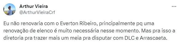 O Flamengo, que também pode perder Gabigol, se vê tranquilo na situação. Isso porque, o contrato do atleta com a equipe carioca se encerra somente em dezembro de 2026 – daqui a três anos.