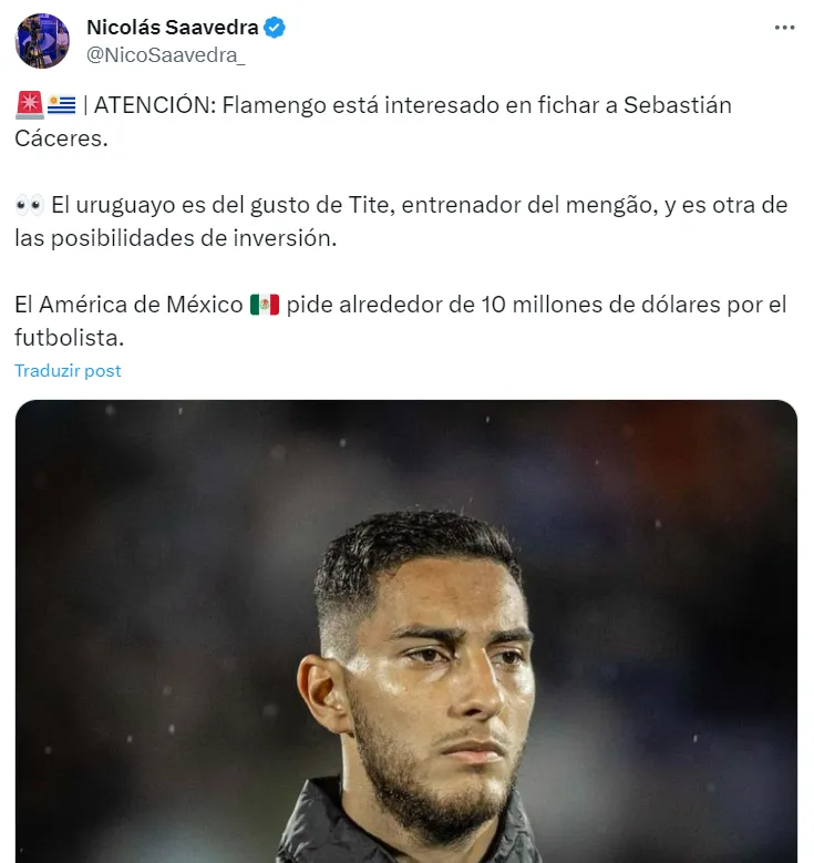 De acordo com informações de Nicolás Saavedra, fonte da matéria, o América do México está aberto em vendê-lo e pede algo em torno a R$ 49 milhões (10 milhões de dólares).