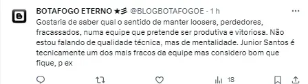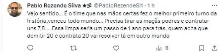 Em um momento tão crucial de reta final da competição, o time não conseguiu sustentar a vantagem que conquistou e acabou sendo alcançado pelos rivais. Entre os torcedores existe um sentimento de terra arrasada e nos bastidores, segundo o jornalista João Pedro Fragoso, do o Globo, a direção da SAF busca combater essa ideia.