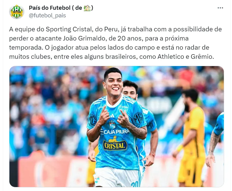 A informação sobre o interesse do Athletico-PR no futebol de Grimaldo vem do jornal peruano “Líbero”, que também destaca o interesse no jogador vindo de outro clube brasileiro: o Grêmio.