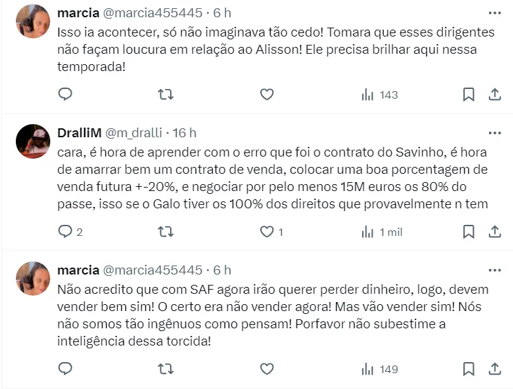 Ciente de que haverá grandes interessados no jogador, o Atlético-MG molda o jogador para conseguir o máximo possível de montante. O plano do time mineiro é fazer de Alisson sua maior venda da história financeiramente.