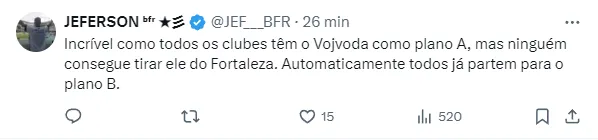 Vojvoda nunca escondeu que quer cumprir seu contrato com o Fortaleza. Entretanto, ainda assim, o Atlético Mineiro deve fazer uma investida em caso da saída de Felipão.