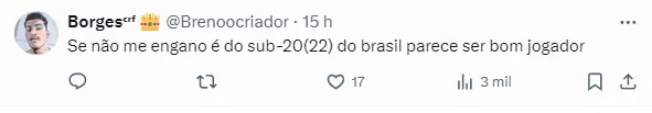 Mas, enquanto isso, Mateus Henrique segue no futebol mineiro. Ele que subiu ao time profissional em 2022, tendo disputado quatro jogos naquele ano. Já em 2023, foram 16 partidas.