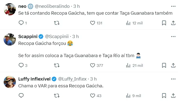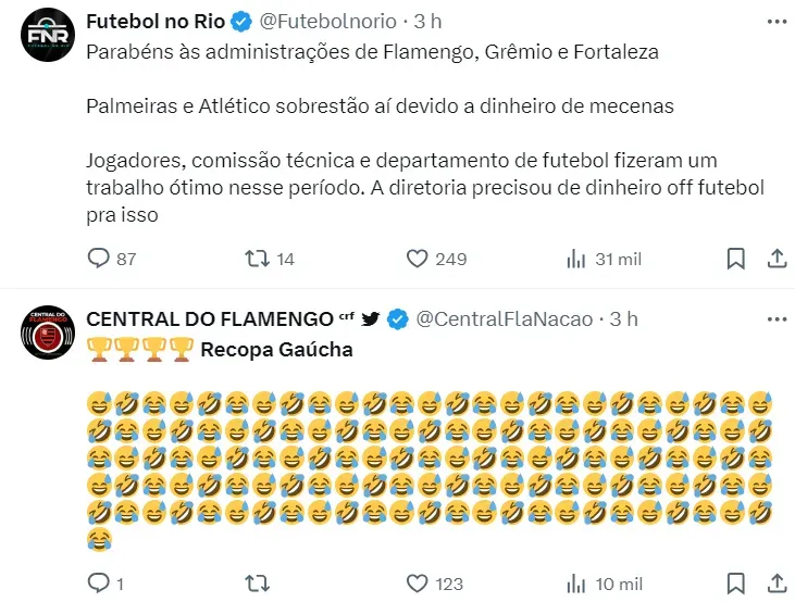 Com 14 títulos conquistados, o Flamengo é um dos três times do futebol brasileiro com mais troféus ganhos nos últimos dez anos. Junto com o clube carioca, aparecem Palmeiras e Grêmio.
