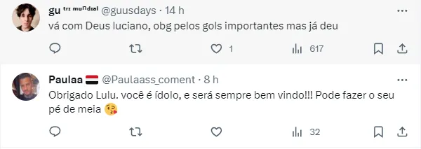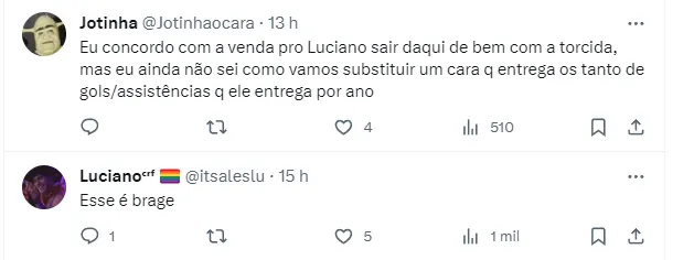 As coisas, porém, não avançaram e o atleta continuou no Morumbi, tendo sido, recentemente, campeão da Copa do Brasil. O jogador de 30 anos tem contrato até o fim de 2024.
