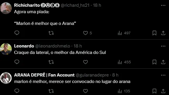 “No Brasil, hoje, não tem um lateral-esquerdo perto do que faz o Arana”, completou o comentarista do Grupo Globo na tarde desta quarta-feira durante o Seleção SporTV.