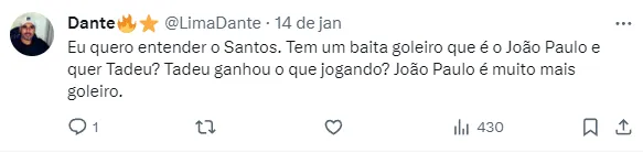 Tadeu, do Goiás, também pode ser reforço para 2024. Conforme repercutido por Jorge Nicola, o Esmeraldino aceita fazer negócio por algo na casa dos R$ 35 milhões.