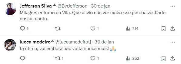 Fora dos planos do Santos, o velocista, no entanto, não se encaixa no perfil preferido do Grupo City. A estratégia é de priorizar a chegada de jogadores jovens e com alto poder de desenvolvimento.