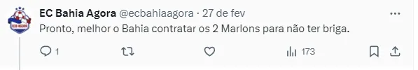 Agora, o portal Notícias do Bahia repercute que Marlon é avaliado pelo Transfermarkt em 5 milhões de euros. Na atual cotação, os valores correspondem a cerca de R$ 27 milhões.