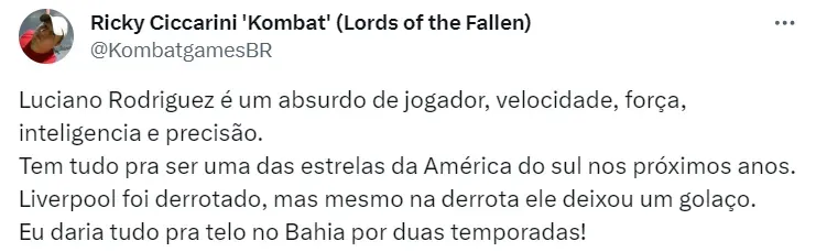 Apesar do alto valor de 15 milhões de euros, o Bahia faz parte dos vários clubes que estão acompanhando de perto a situação de Luciano Rodríguez, segundo informações de Neto Sousa.