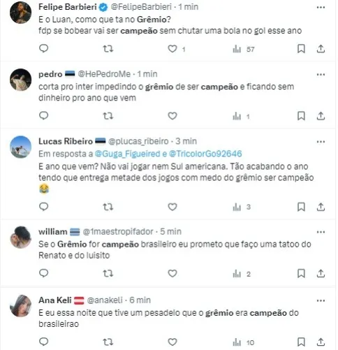 “Eu estou realmente assustado com a possibilidade do Grêmio ser campeão brasileiro”, admitiu Baldasso. Ele analisou a situação do Botafogo, considerando-o praticamente fora da disputa pelo G-4, e elogiou a surpreendente trajetória do Grêmio no campeonato.