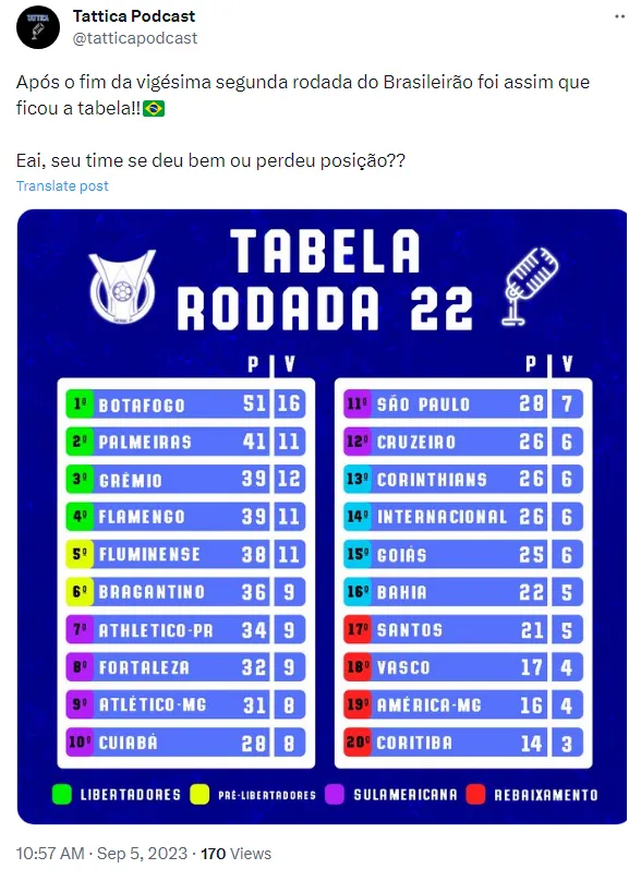 Tabela do Brasileirão 2023