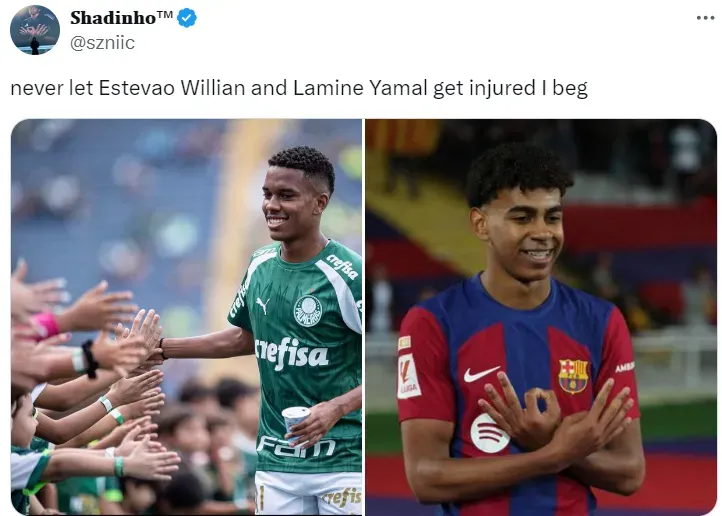 O Palmeiras está ciente do grande talento que tem em mãos e também sabe dos grandes interessados em Estevão, uma vez que, além do Barça, times da Premier League monitoram o atleta.