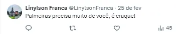 “Às vezes quando a gente ganha não ficamos satisfeitos pelo desempenho, queremos ganhar jogando bem. Tiveram vitórias que falamos que faltou algo. Tem essa cobrança boa que faz a gente ficar incomodado”, finalizou o jogador do Palmeiras.