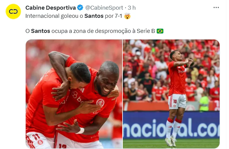 Após perder por 7 a 1 para o Internacional, o Santos se complica na luta para permanecer na elite, mas ainda não é um caso perdido, pois o Peixe está a apenas um ponto de sair da zona de rebaixamento.