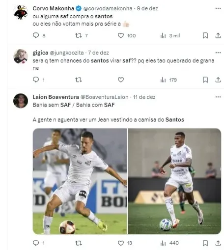 “Eu estou achando que vai ter uma SAF aí, que o Neymar vai comprar o Santos. Será? Será?”, questionou Benja, levantando a expectativa dos torcedores santistas.