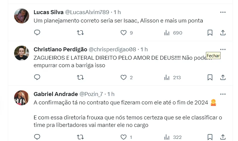 Um dos nomes que são possíveis alvos do Galo para 2024 é Bernard, ídolo do clube e que, atualmente, atua no futebol europeu, na Grécia. Não há informações sobre conversas neste momento, mas há o interesse do Galo.