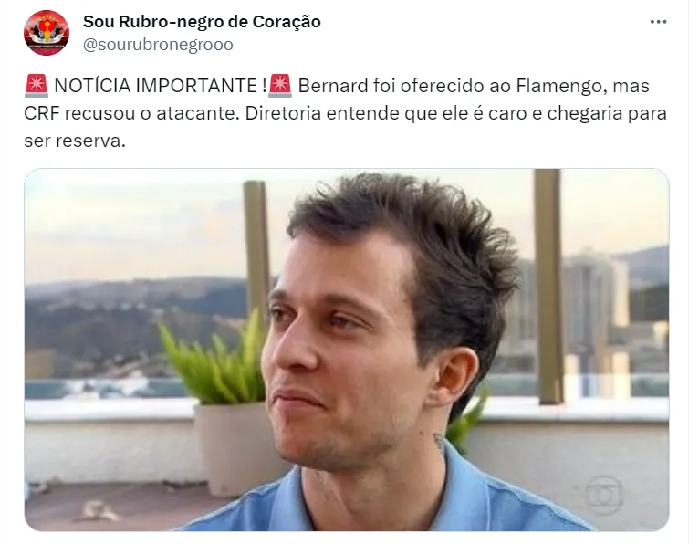 Enquanto negocia seu retorno ao clube de Belo Horizonte, Bernard teria sido oferecido para jogar no Flamengo, de Tite e de tantos jogadores acima da média. O nome do atleta foi passado ao clube carioca, que tomou uma decisão imediata.