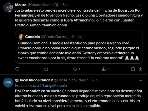 Pol Fernández tem contrato com o Boca Juniors apenas até dezembro de 2024. Desta forma, restam mais 6 meses para o vínculo do jogador acabar com o clube da Argentina.