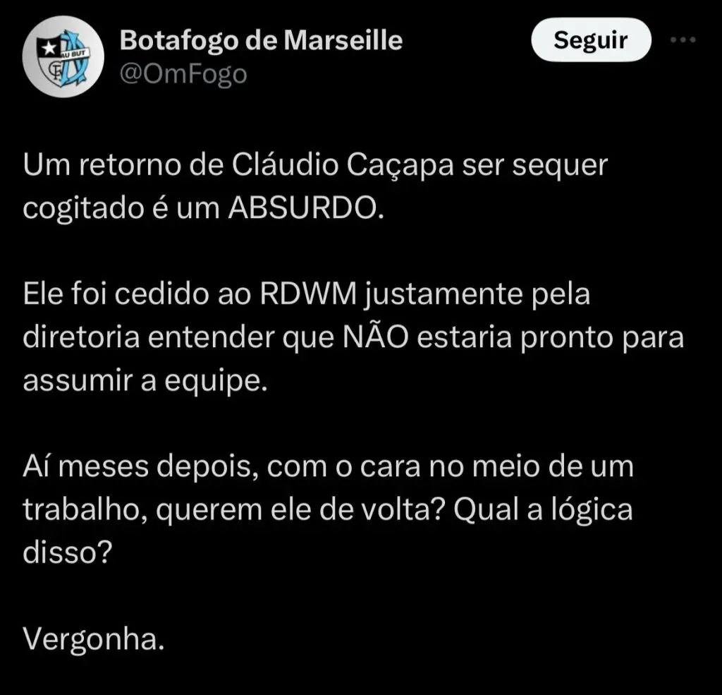 Segundo informações do jornalista Paulo Vinicius Coelho, o Botafogo estuda a troca de treinador, e o um dos nomes analisados é o de Claudio Caçapa, que fez sucesso como interino do clube após a saída de Luís Castro.