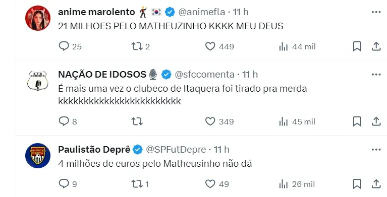Matheuzinho está fora dos planos do Flamengo. Inclusive, seu destino seria Corinthians, de Mano Menezes, mas um acordo não foi selado de última hora entre as partes.