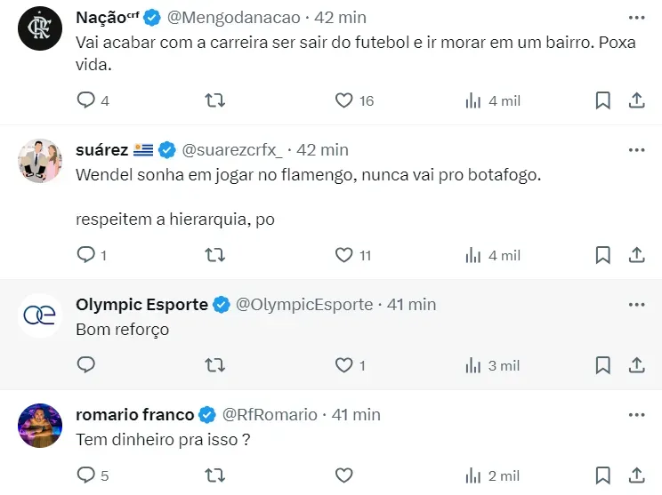 Recentemente, o Zenit recusou uma oferta de R$ 67 milhões do Flamengo por Wendel, pois entendia que o volante poderia render mais montante. Agora, eles estão mais abertos a vendê-lo.