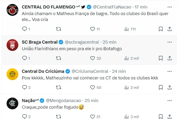Com Wendel perto, o Botafogo de Textor abriu conversas em busca de tentar chegar a um acordo com Matheus França (Matheuzinho), lateral-direito do Flamengo, que está sem espaço com Tite.