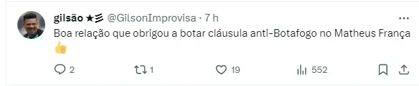 John Textor possui uma ótima relação com a Diretoria do Flamengo, o que pode pesar a favor. Matheus França está com 23 anos e somou 26 jogos disputados na temporada passada.