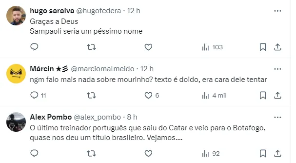 Desta forma, John Textor e sua equipe iniciaram as buscas por um novo treinador. Diversos nomes vêm sendo especulados, indo de José Mourinho a Jorge Sampaoli.