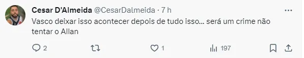 Isso porque, segundo Bernardo Gentile, o Botafogo retomou as conversas para fechar com o meio-campista Allan, ex-jogador da Seleção Brasileira e hoje no mundo árabe.