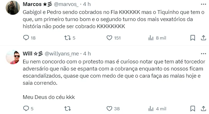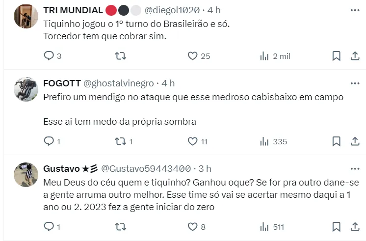 O atacante Tiquinho Soares sofreu duras críticas por parte da torcida do Botafogo após o Glorioso ficar apenas no empate na estreia na Libertadores da América. Não demorou muito para o jogador entrar na mira de um rival do Fogão.