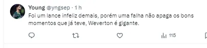 Muitos acreditaram que o arqueiro falhou no gol e que poderia ter sido evitado. Devido a muitas críticas, Weverton se blindou nas redes sociais.