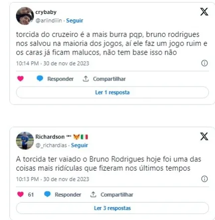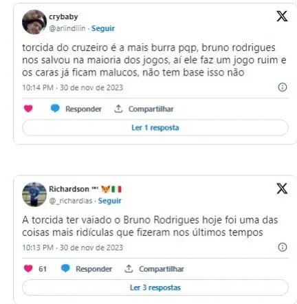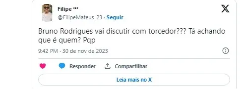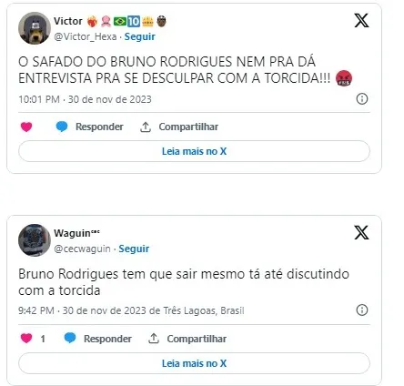 A atitude de Bruno Rodrigues gerou reações diversas entre os torcedores, alguns compreendendo a frustração do jogador diante da pressão, enquanto outros criticaram a postura em meio a um momento delicado da partida.