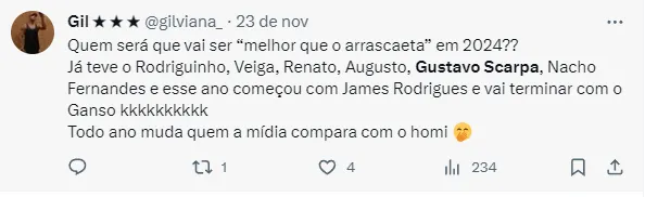 Porém, agora, as informações do momento são de que Gustavo Scarpa pode ser anunciado pelo Internacional antes do dia 10 de dezembro. Quem informa é Leonardo Meneghetti.