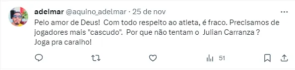 Há alguns dias, o jornalista Jorge Nicola contou que Anderson Barros já entrou em contato para saber melhor a situação do jogador, que soma apenas nove jogos na atual temporada.