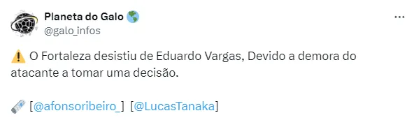 Isso porque, segundo o portal RTI Esporte, o Vasco reabriu conversas para ter o jogador. Porém, o alto salário de Eduardo Vargas aparece como principal empecilho. Uma oferta teria sido realizado na última quinta-feira (18).