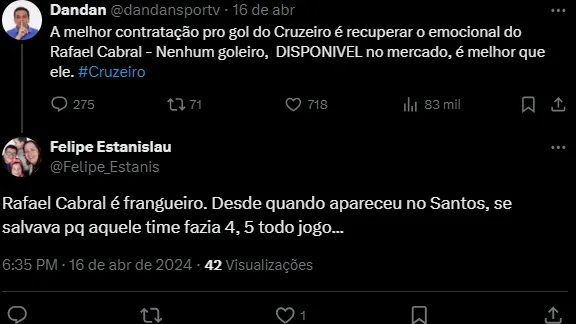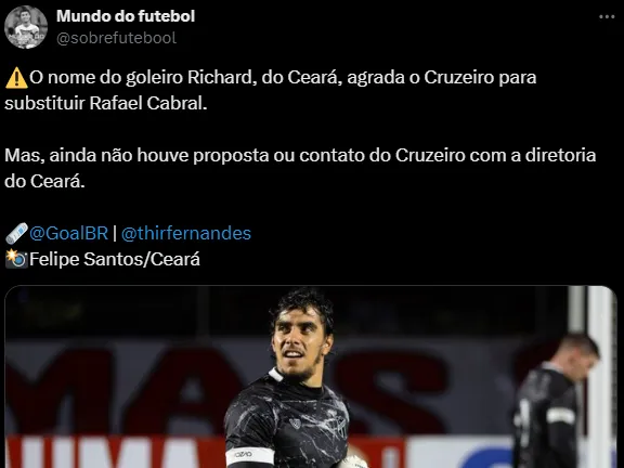 Rafael Cabral deve sair do Cruzeiro